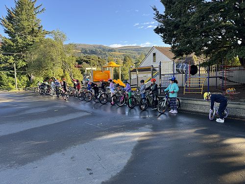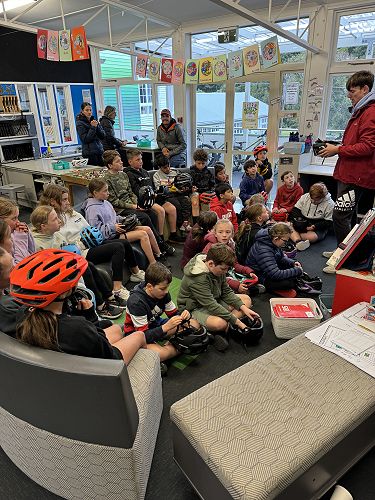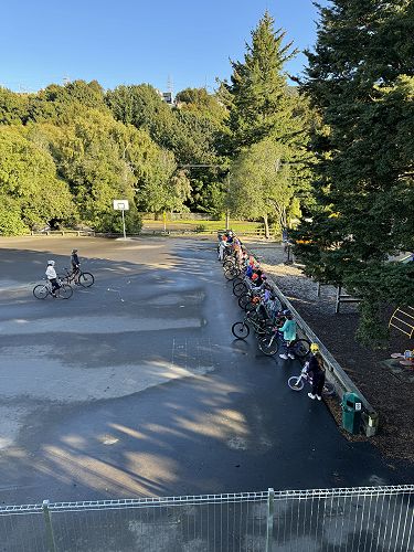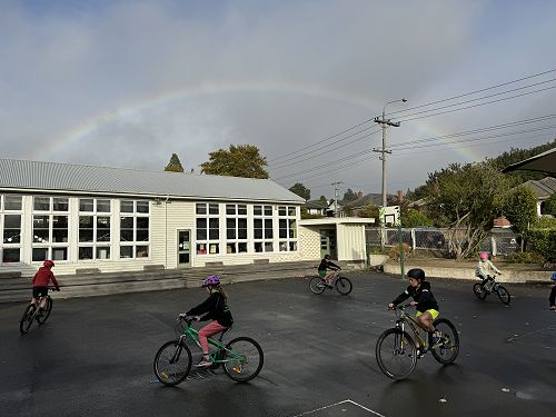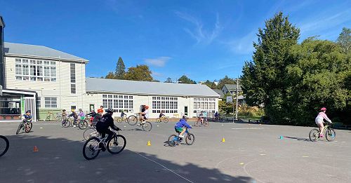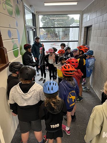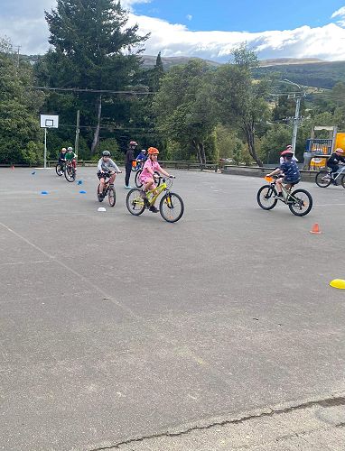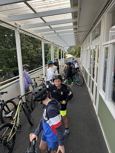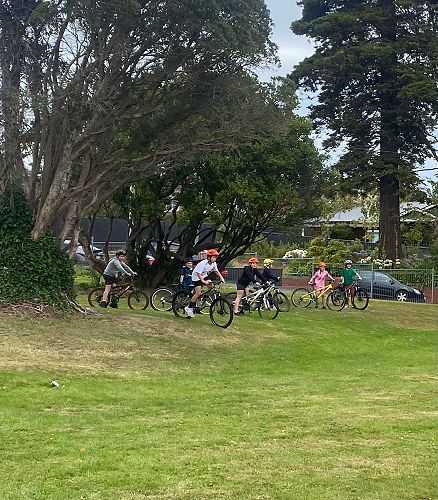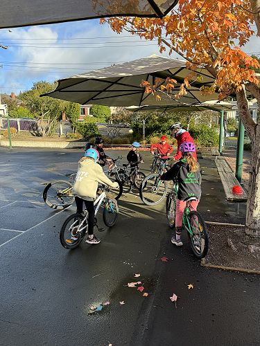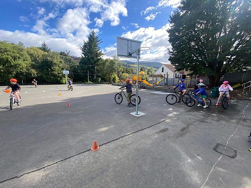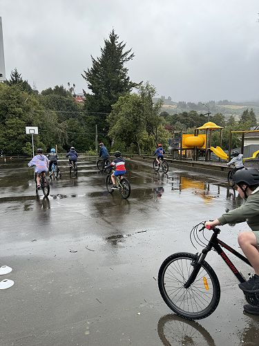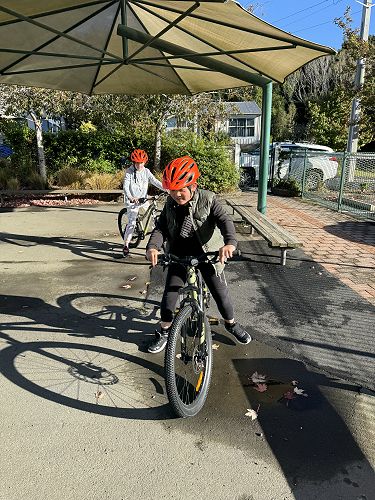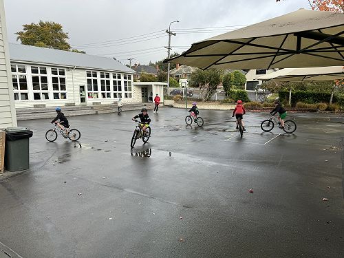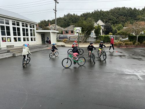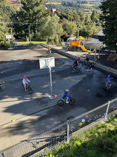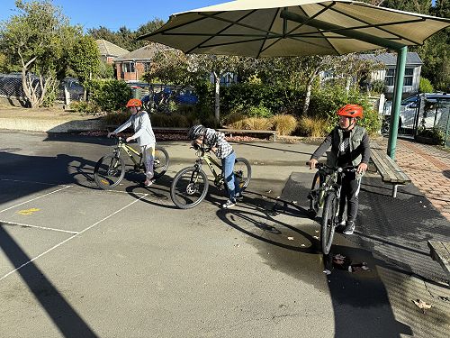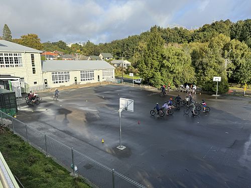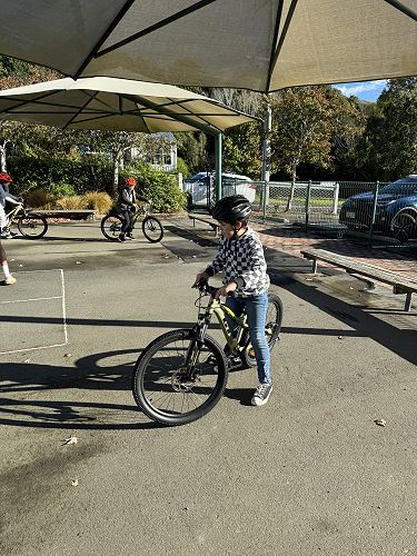 After morning tea we went to Room 8 to watch a video about what to expect if you're riding on the road. When that was finished we went down to the bottom court and Rose set up a course for us to go through. Everybody got a point. I got 6 1/2 points. We went up to the top field to do quick stops and skids.