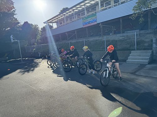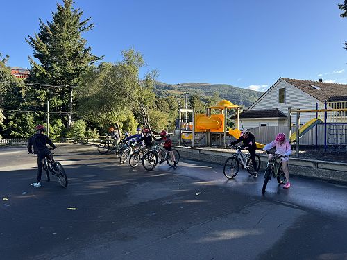 Last Tuesday I took part in the Cycle Skills training. My instructor was called Rose. The first thing we did was ride around on our bikes getting used to the riding area. Rose got us all lined up on the ditch near the playground. We learnt how to get on the bike properly by tilting the bike near myself and swinging a leg over while straightening the bike up.
