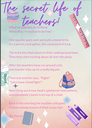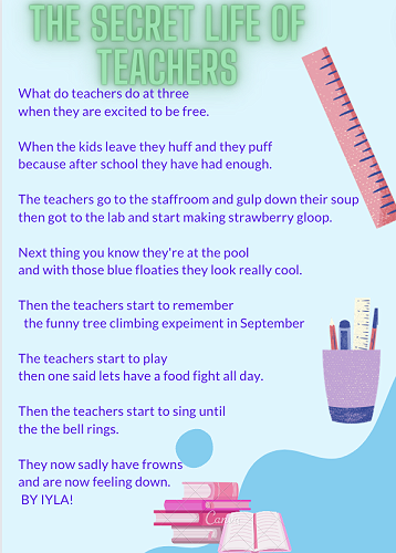 The Room 11 writers have had fun writing poems about exactly that. Here are a few of them. We hope they bring smiles to your faces!