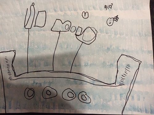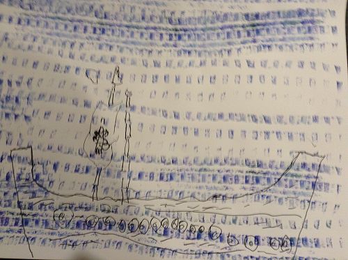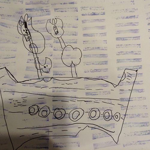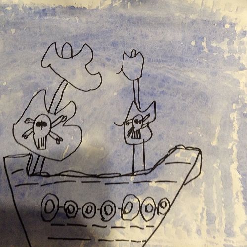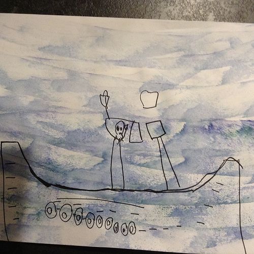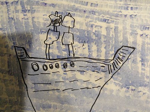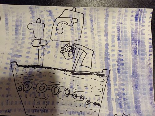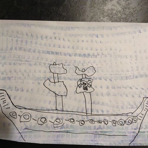 Room 6 used a print making technique to create water. They then followed a you tube clip on drawing a pirate ship and were all very impressed with their first attempts.