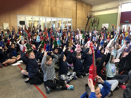 On Wednesday the Senior Uke group went to Tahuna Intermediate to play ukulele with different schools across Otago. There were over 500 kids there! We played songs that we have been practicing. We played a couple of songs then had morning tea. Then we came back to the hall and played some more songs. Lots of people were participating in 'Twist and Shout' and 'Get Stupid'. The last song we did was 'Eye of the Tiger' and some teachers went up to the front in tiger costumes and danced to 'Eye of the Tiger'. There was also a ukulele design competition were Callum and P from 'The Hits Dunedin' judged 3d ukes and ukulele templates. For the 3d ukes you had to make your own uke with cardboard and any other equipment and for the templates you had to colour it in with any colour you want. Uke Jam was the best. By Daniel Linton