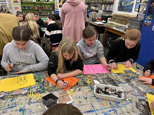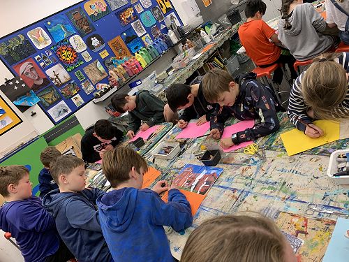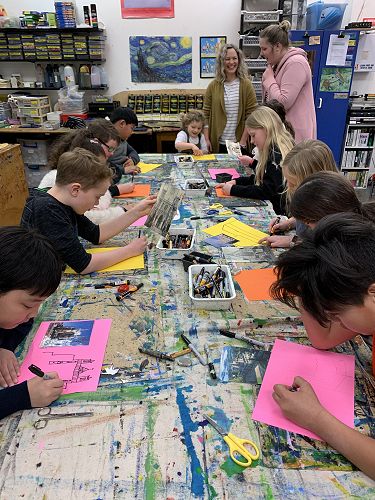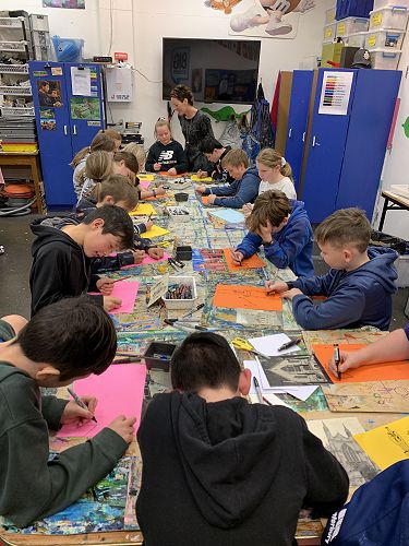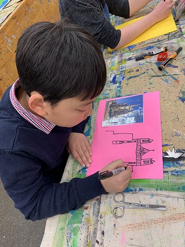 In the art room there were lots of photographs of houses and buildings around Dunedin. The children selected one and drew it carefully.