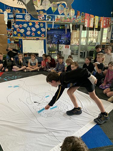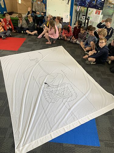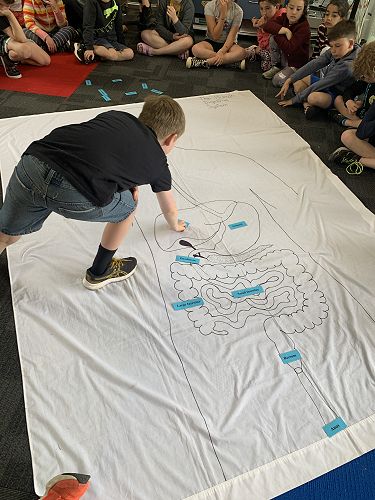 The Middle Syndicate's study around the human body continues. We have been doing some fantastic learning all about the human body and how it works. We have been so lucky to have many of our expert parents come and talk to us and recently Sophie's Grandma create this AMAZING gigantic image of the digestive system for us to work with.
