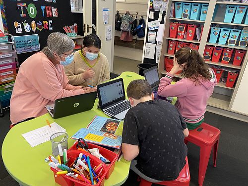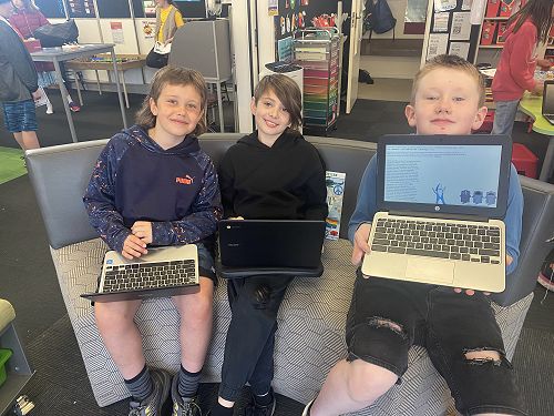 Another group decided to research a topic of their choice. They started by looking for books in the library, then added some online research, before deciding how to share what they had learned.
