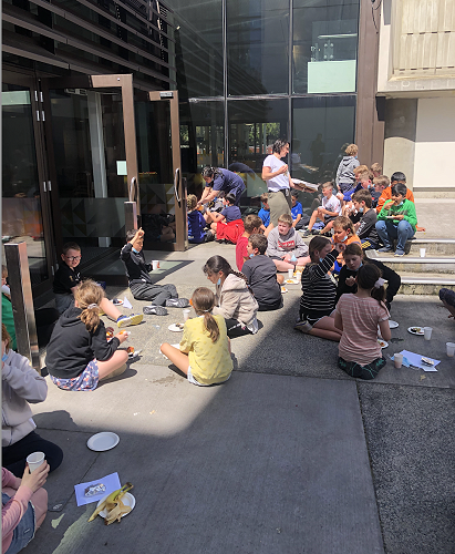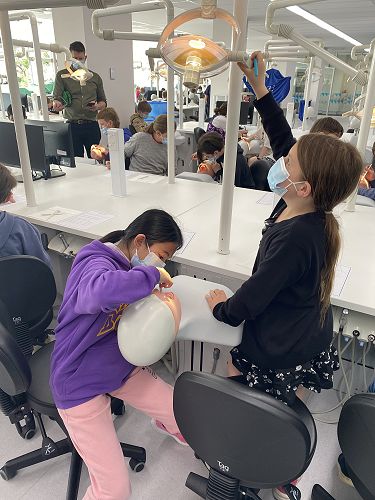 On Monday we went to the dental school and we did 3 activities. The first one was when we looked at a model mouth. We wrote down how many cavities and how many fillings there were. We actually used real dentist tools like a mirror and an explorer! The second activity was when we made a molar out of plasticine. It was super hard. The third activity was an indirect vision challenge where we had to draw a smiley face, wobbly straight lines, and our name and make some things with toothpicks. The fourth activity was filing and replacing a filling on a fake tooth. Then they handed out certificates and we had lunch!! There was pizza, sushi, sandwiches, cookies, juice, water and fruit. There was a lot of stuff to do at the dental school - Emma J-L