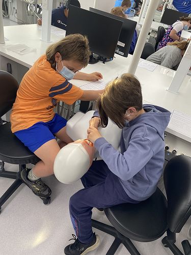 Working in a model mouth with real dental equipment such as 2 tools called the Mirror & the Explorer. We worked in buddies, one wrote down our discoveries & the other checked the mouth, then we swapped.