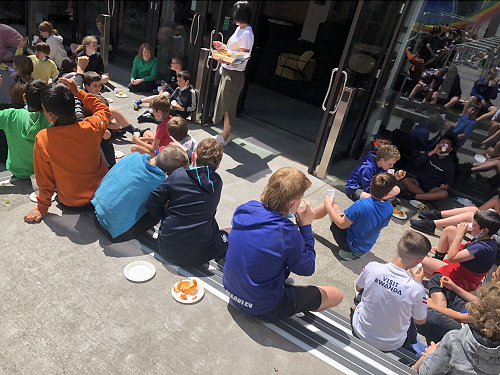 Then we had lunch with pizza, sushi, fruit and juice and we took a bus back to school - Claudia