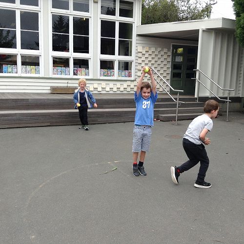 We had fun balancing on different parts of our bodies, and then got to play games where we practiced throwing and catching small balls.