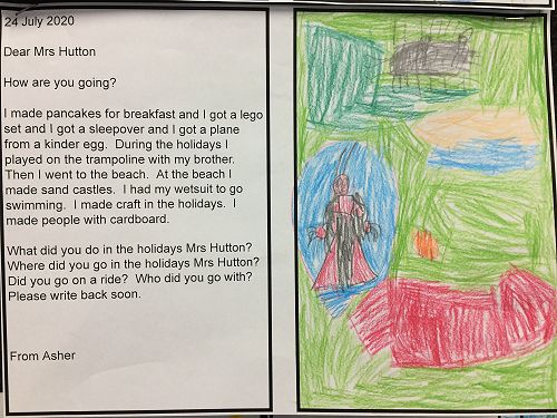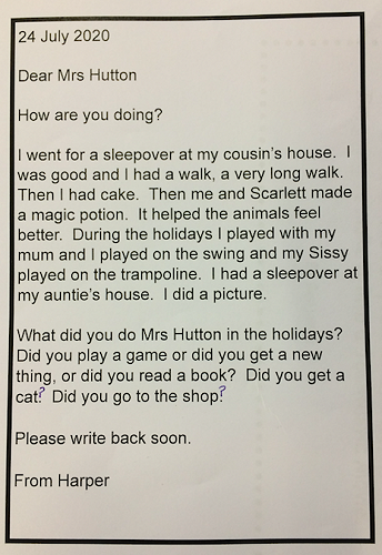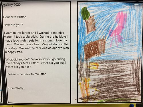 The Room 1 children had lots of news to share after the school holidays. They also had lots of questions to ask Mrs Hutton about her holiday so they each wrote her a letter! If you want to know the answers, you're welcome to read Mrs Hutton's letter back to the class. It's on the wall in Room 1.