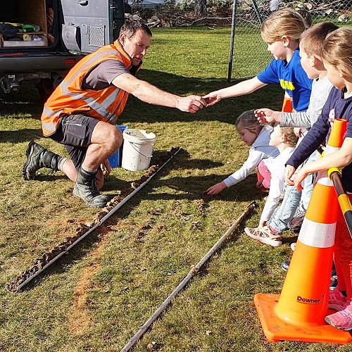 Brian Adams shares his knowledge with some of our Junior Syndicate children as he drills to test the soil in the proposed location of our new build.
