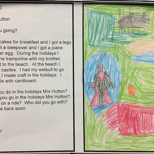 Visit this articleThe Room 1 children had lots of news to share after the school holidays. They also had lots of questions to ask Mrs Hutton about her holiday so they each wrote her a letter! If you want to know the answers, you're welcome to read Mrs Hutton's letter back to the class. It's on the wall in Room 1.