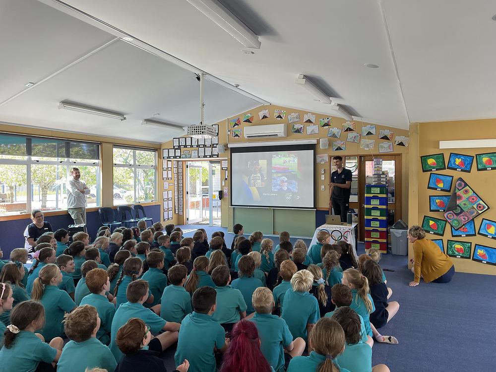 Hamish lives and trains in Christchurch and came to visit us on Tuesday. He spoke about his experiences competing as a top level athlete and the Olympic Values. Hamish showed us a short movie of the New Zealand Team at the Olympics and other photos and movies of him competing as well as passing around his Gold Medal. He was a really engaging speaker and the children asked some great questions at the end of his presentation.