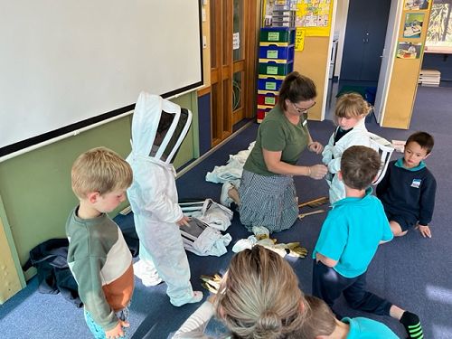 Today we had Kathryn from Clever Little Bees come out and share loads of information about bees. She brought bee suits, all the bee keeping gear, hives and bees! The children learned about the roles the different bees play in and out of the hive, the importance bees have with pollination and about the role of bee keeper. This experience works in with our health topic looking at how communities work, as part of our Turangawaewae (our place to stand) focus. Half the school had lessons today and the other half will get this experience next week.