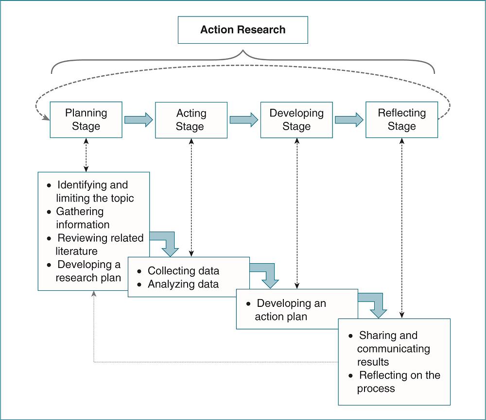Action research is a process by which teachers investigate an educational situation or issue they want to change. The value of action research is that it is conducted by ‘insiders’, those closest to the situation being studied. It gives teachers the power to generate knowledge and share that knowledge for a wider impact. Rather than only being passive consumers of knowledge, teachers become the ‘knowledge generators’ and contribute meaningfully and impactfully to the ‘knowledge economy’. Mertler (Mertler, 2018) identifies the improvement of educational practice and the professional growth and empowerment of the teacher as being the benefit of engagement in action research. He (Mertler, 2013) also rightfully argues that engagement with action research by teachers in their settings and investigating their problems of practice is the ‘most appropriate way to address those problems.’