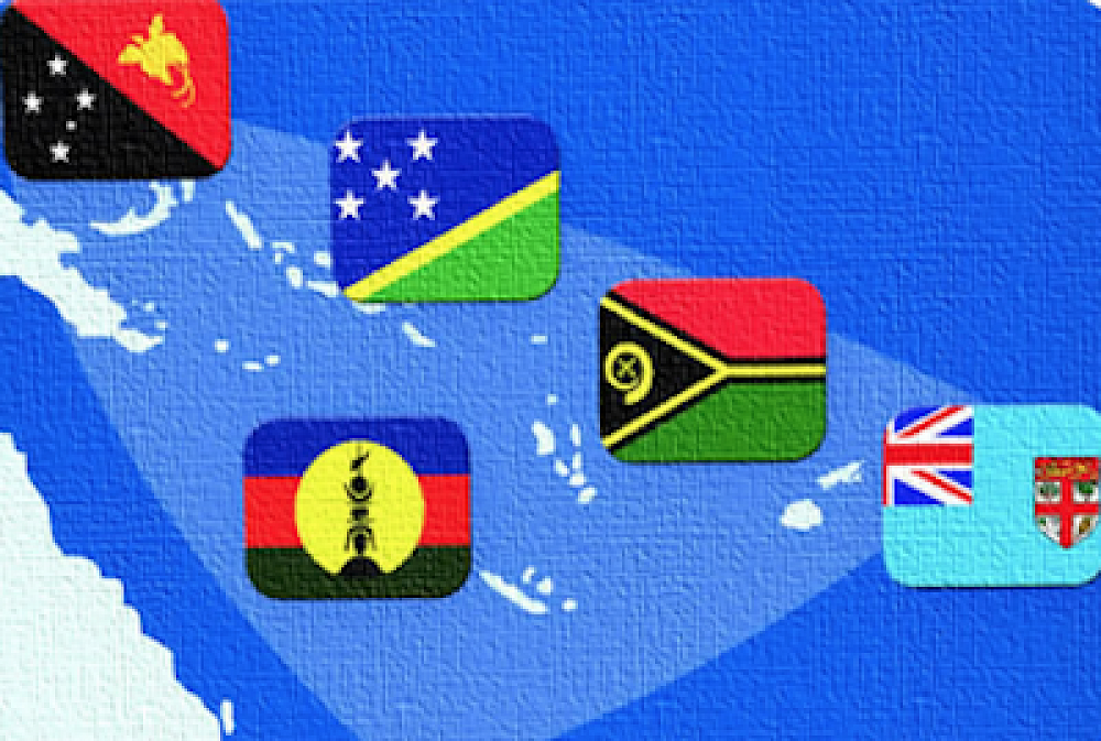 The four MSG member countries and a territory (clockwise from top left): Papua New Guinea, Solomon Islands, Vanuatu, Fiji and Kanaky New Caledonia. Graphic: MSG