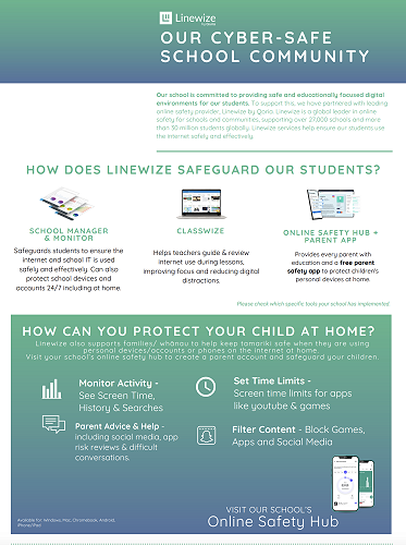 Our school is committed to providing safe and educationally focused digital journeys for our students. To support this, we have partnered with leading online safety provider, Linewize by Qoria.