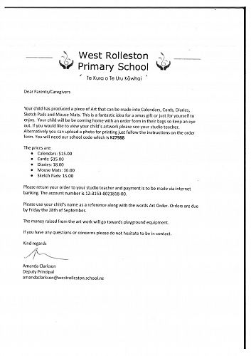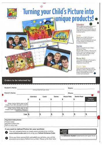 If you would like to order calendar art, please can you bring your orders into the office by Friday 29th (last day of term) - Please find below the order form if your has been misplaced - Thank you