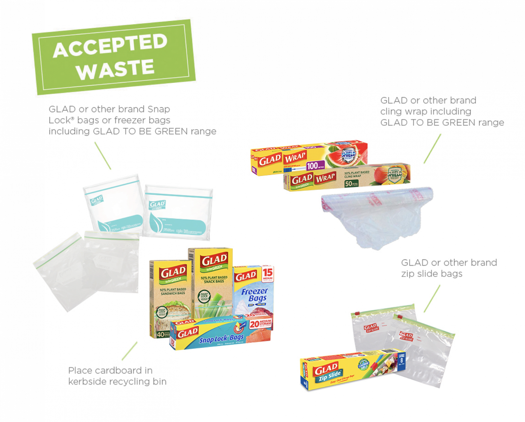 You will still find recycling stations in the school admin area that you can put your oral care waste in. We will continue to collect the yoghurt pouches until the end of August, and we will begin to collect the Glad products from today.