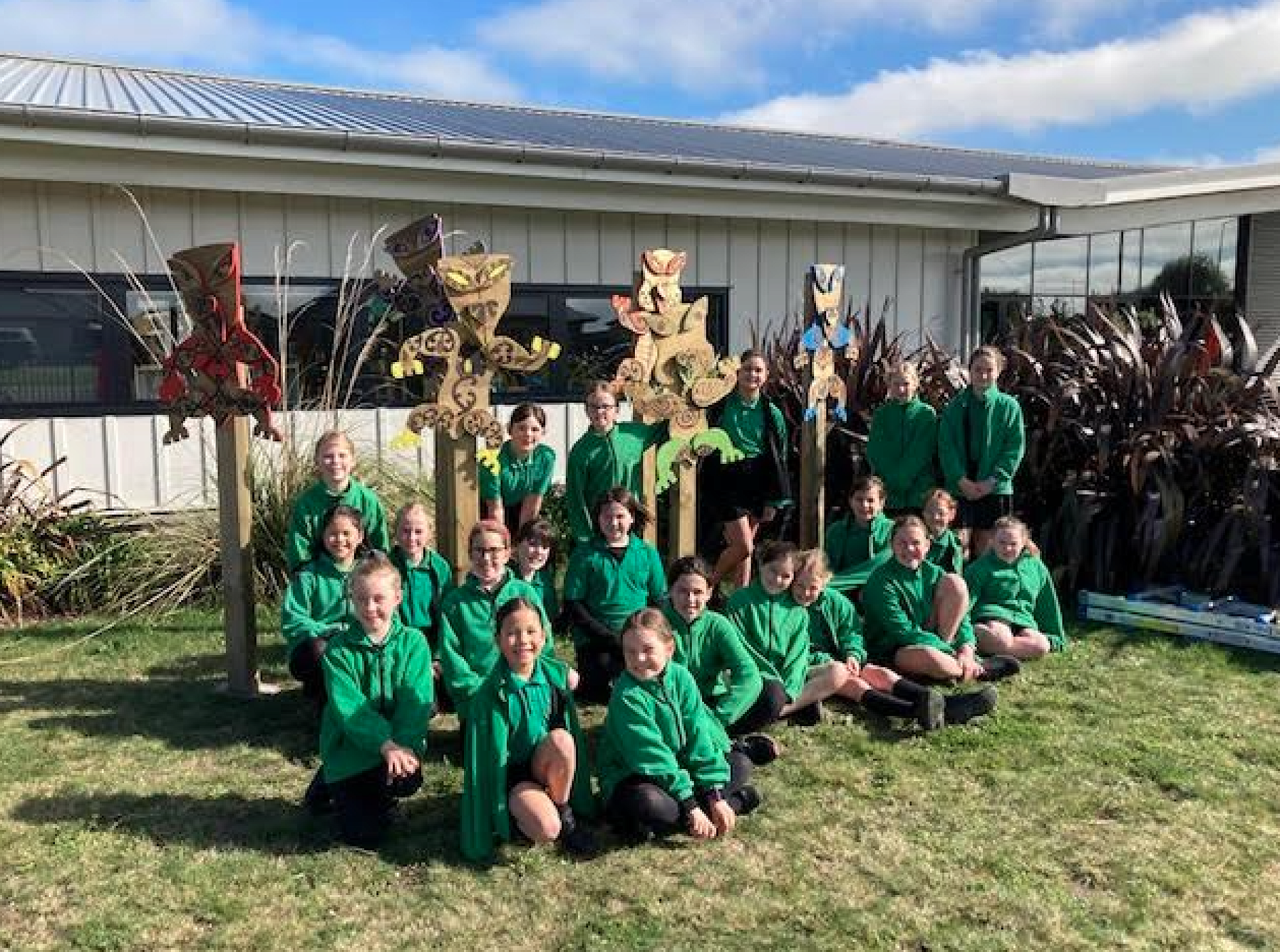 Our Art Club is run during lunch breaks every week and our focus is to create large scale masterpieces to beautify our school. Our masterpieces are symbolic of our school values and we make sure to always incorporate unique designs from our tamariki too.  We love using a range of different materials and tools to add detail and interest into our mahi toi (art).