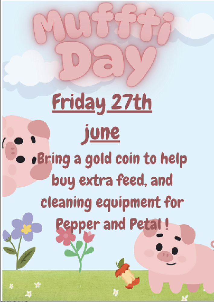 Mufti Day/Casual Clothes Day - Friday 27th June - Gold Coin Donation West Rolleston — June 26th, 2025 Bring a gold coin to help buy extra feed and cleaning equipment for Pepper and Petal!