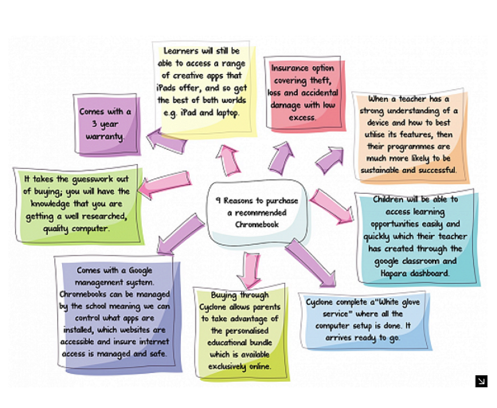 We are a Bring Your Own Chromebook (BYOC) school for our Year 5 - 8 learners. This means that learners in the senior school use Chromebooks to support their learning programmes.