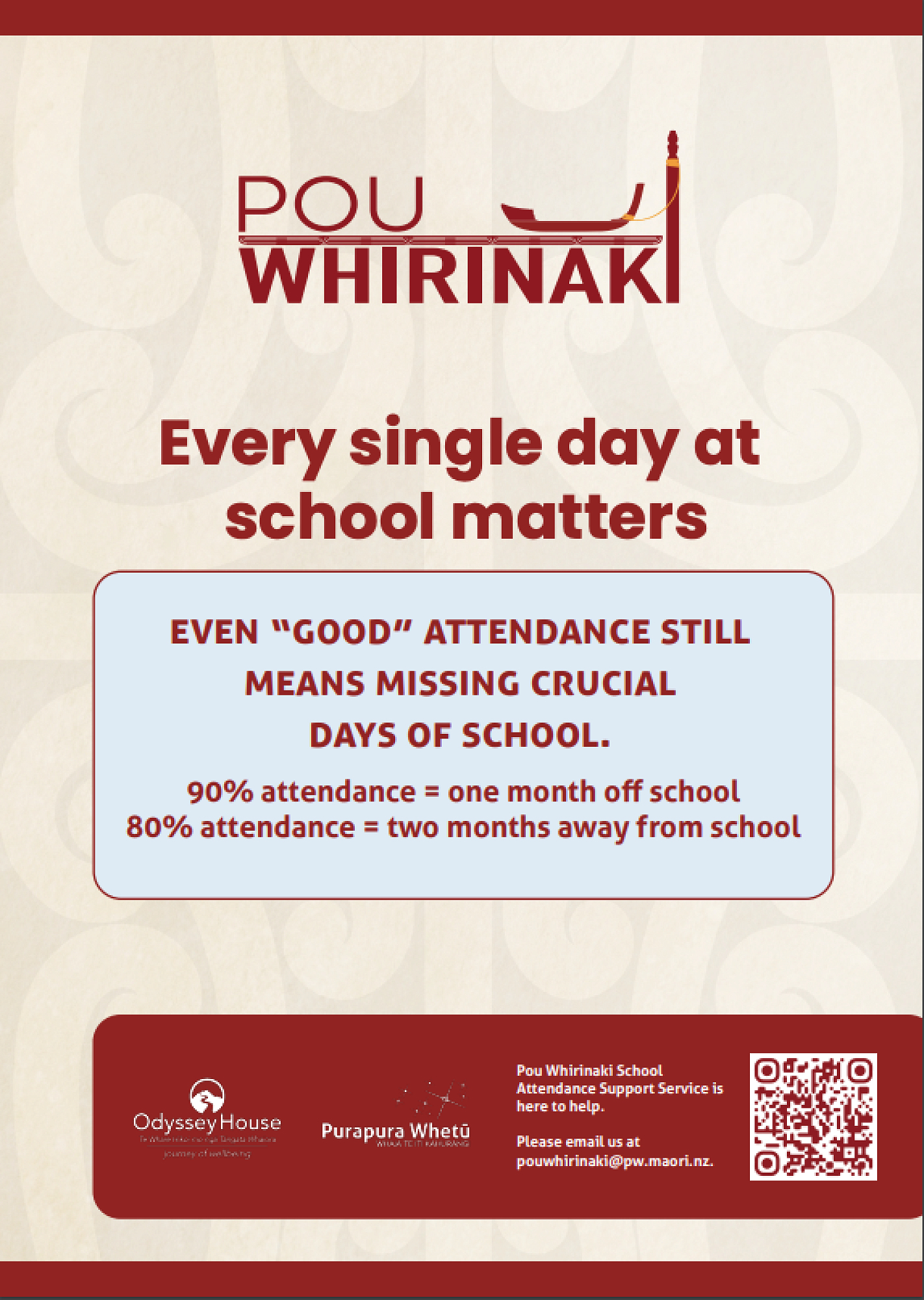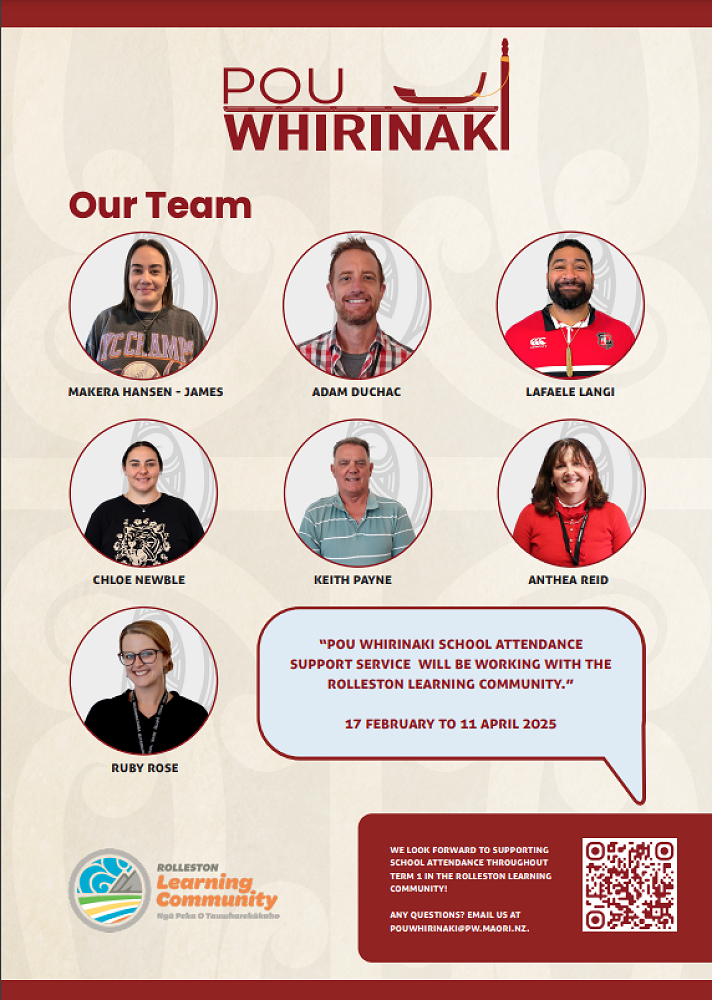 As part of our ongoing commitment to attendance, we are partnering with Pou Whirinaki, who will be working closely with our school and whānau to support students with their school attendance over the next eight weeks.