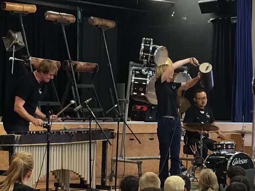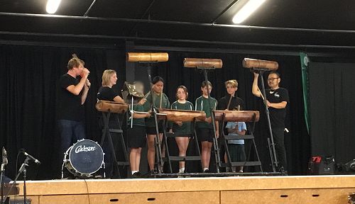 This week, the percussion band Strike came to Westburn to perform an amazing concert, involving a diverse range of percussion instruments and music. The group used many innovative instruments they had made themselves from biscuit tins, sheets of metal, and other ordinary things in addition to traditional instruments.