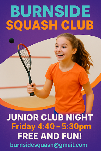 Free to play squash - Burnside Squash Club are offering our students the opportunity to give squash a go. Free every Friday during school terms from 4:30pm - 5:30pm. Squash rackets, squash balls, and eyewear are all provided.