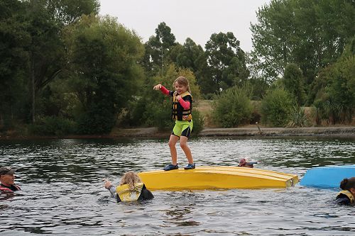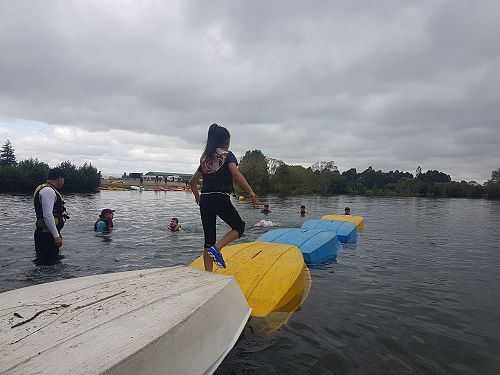 We travelled by bus to Lake Rua and spent the whole day completing a variety of water safety tasks. Kayaking, raft building and water confidence were well covered by the instructors from Kore. We were lucky and had warm but overcast weather. This kept us sun safe and water safe.