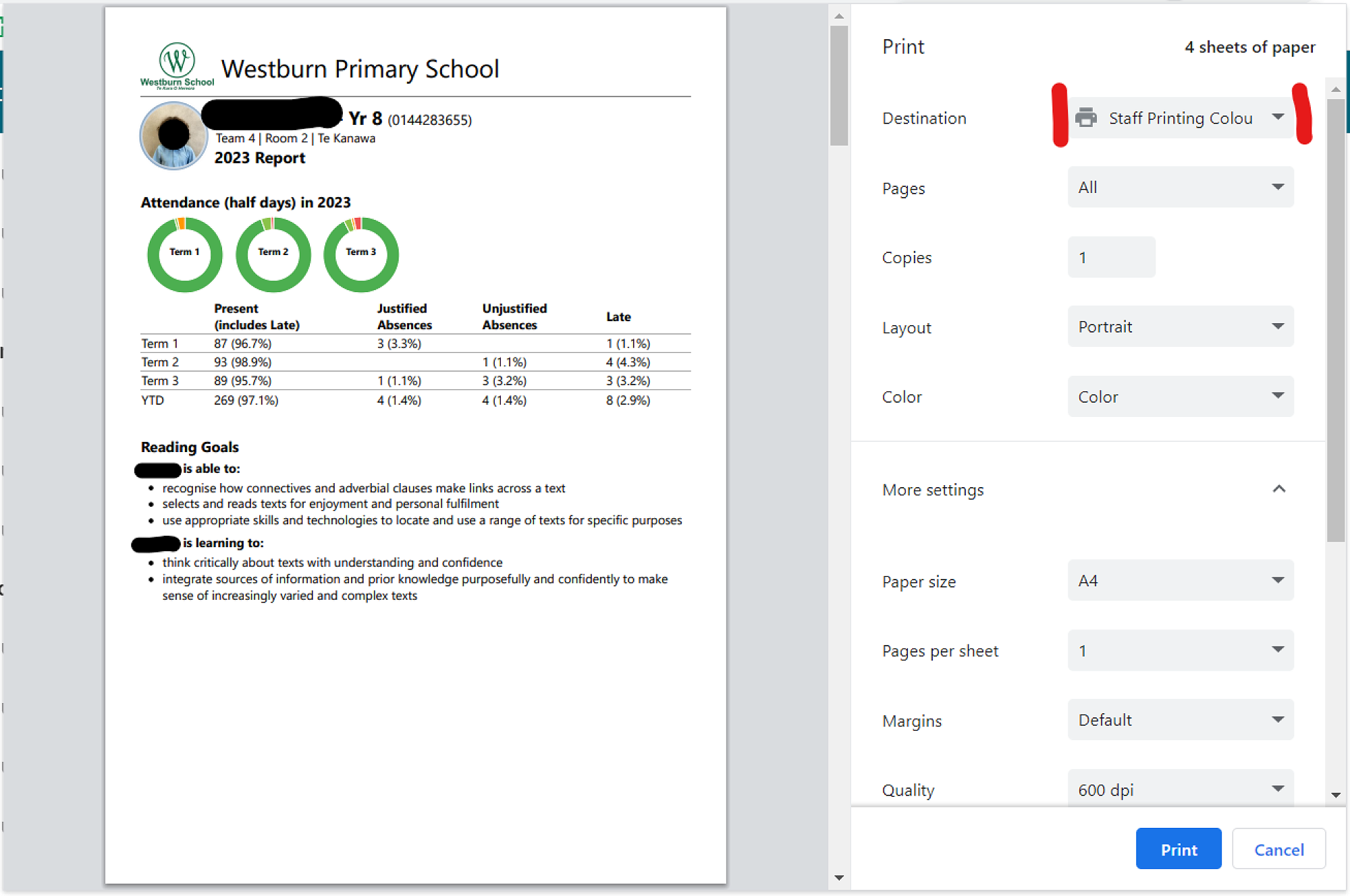 Te Kura o Hereora Westburn uses the Hero app for sharing your child's learning and reporting on your child's progress. This guide shows you how to print your child's report or save it as a PDF to share it as an attachment.