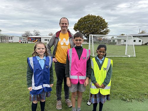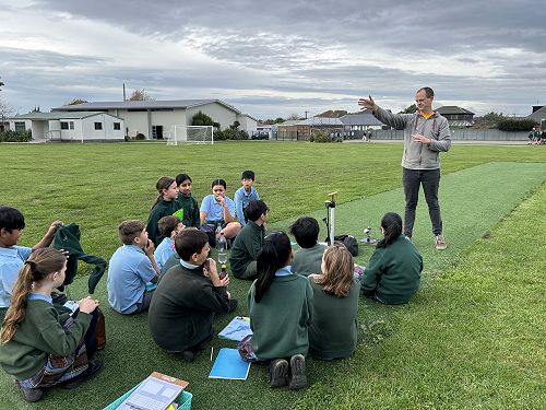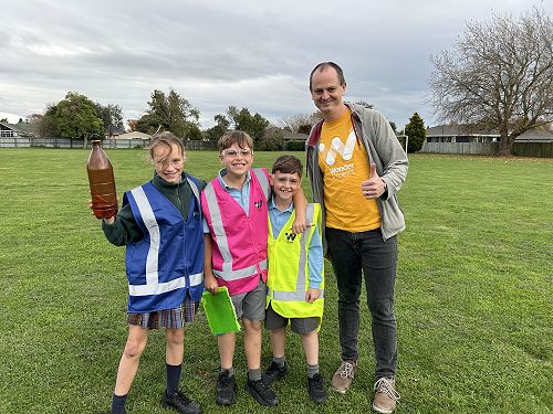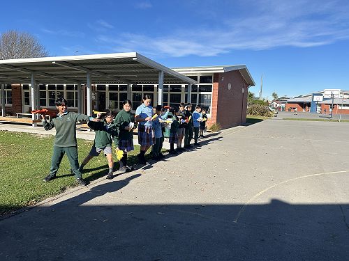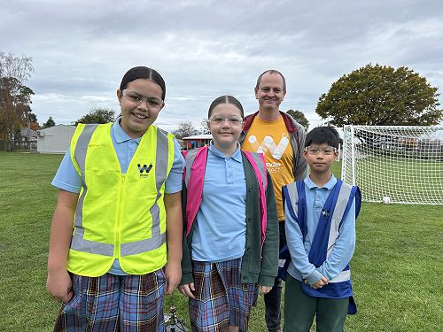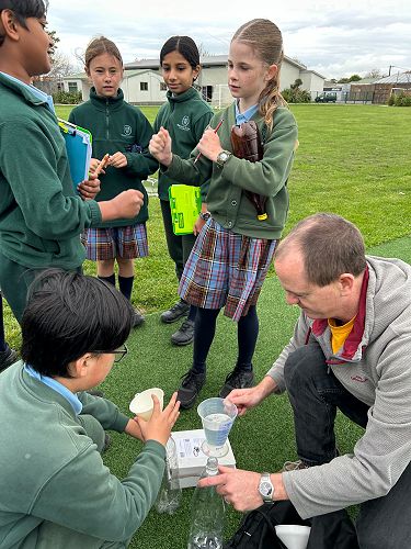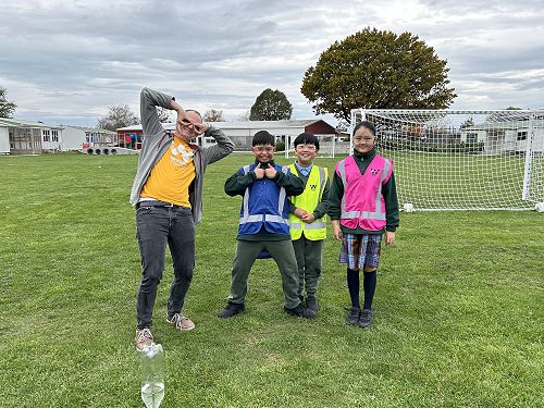 Students learned how force propels a water rocket. By adding water to a plastic bottle and pumping in air, they built up pressure — and when that pressure was released… lift-off! Crews explored the four forces of flight (thrust, drag, weight, and lift) and worked together to identify how each force affects their rocket during flight.
