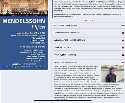Zachary recently made his professional singing debut - at Carnegie Hall. That's not a bad place to start!