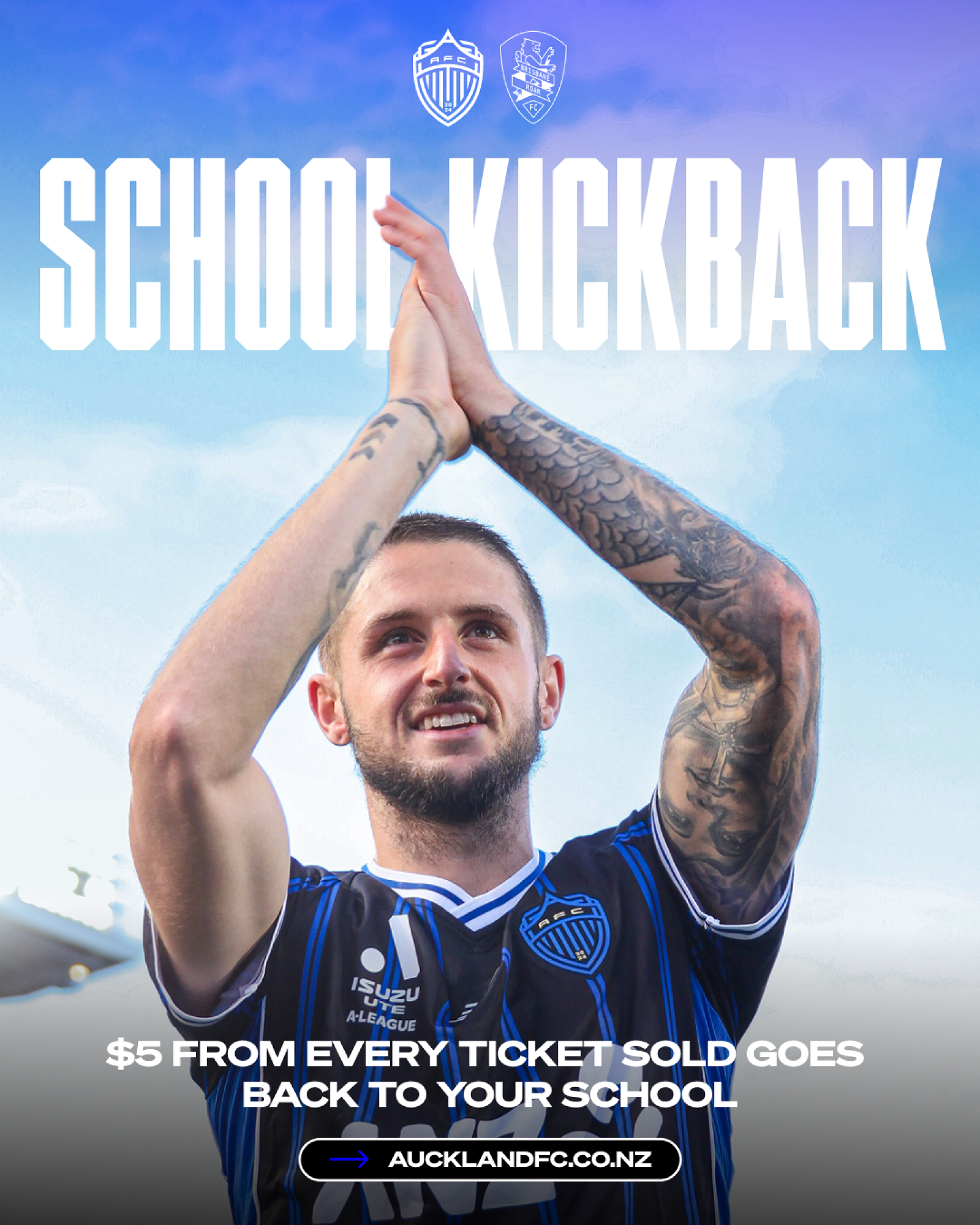 If you purchase tickets through Spinzo, Auckland FC will donate $5 to Westmere School for every ticket sold.