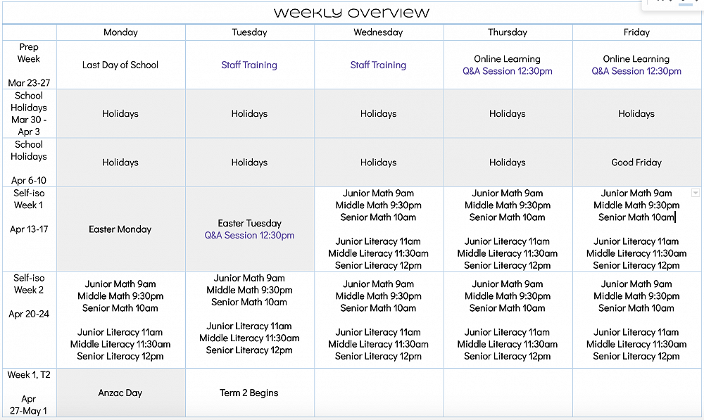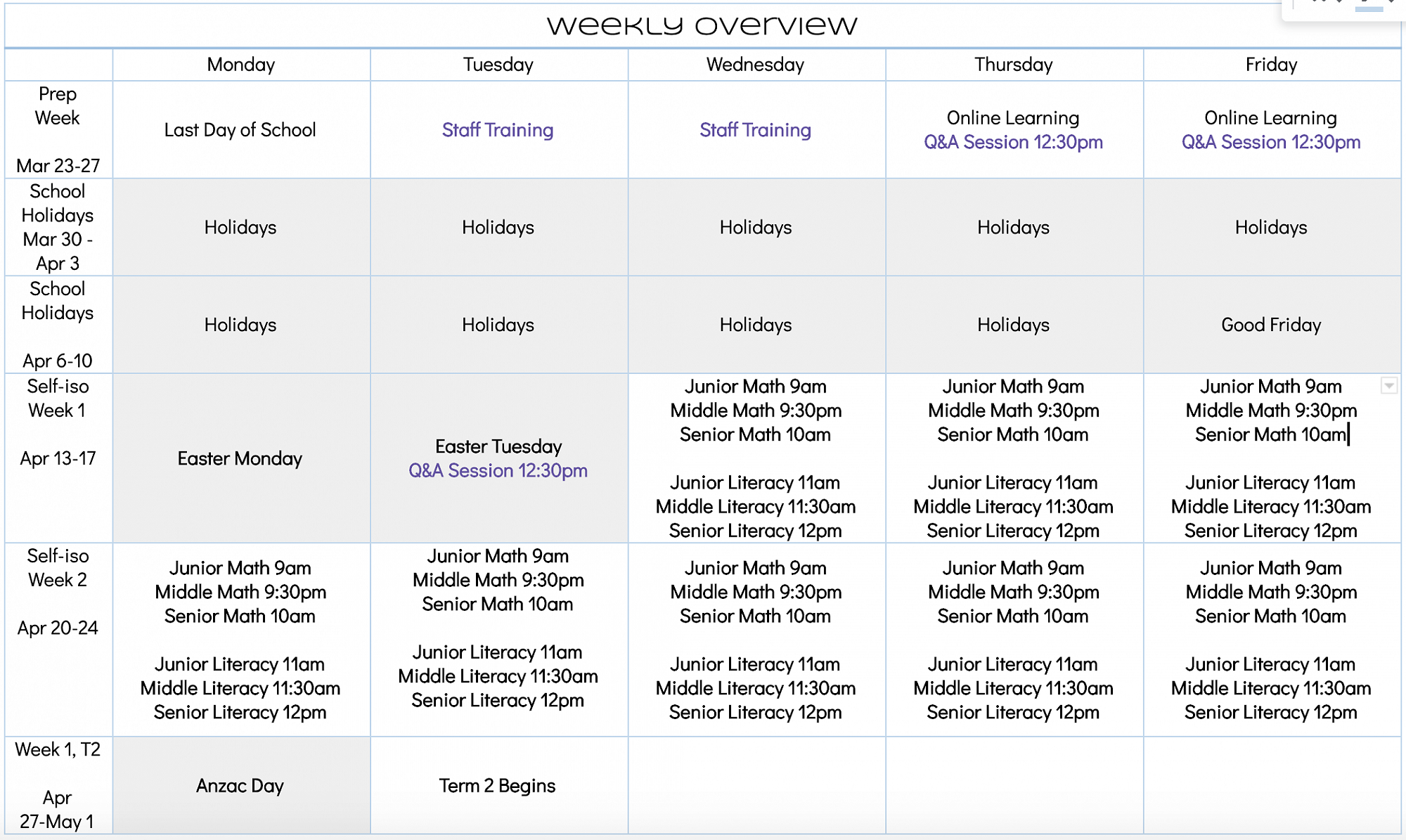 School holidays begin Monday but as this is an unusual time and the normal range of options for the holidays are not available we will be providing some learning links to assist during the next few days and the holidays.
