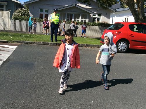 Constable Taina says that you should practise 'being the boss' when crossing the road with a parent. Lots of practise now will mean you'll be really good at it in a few years time!