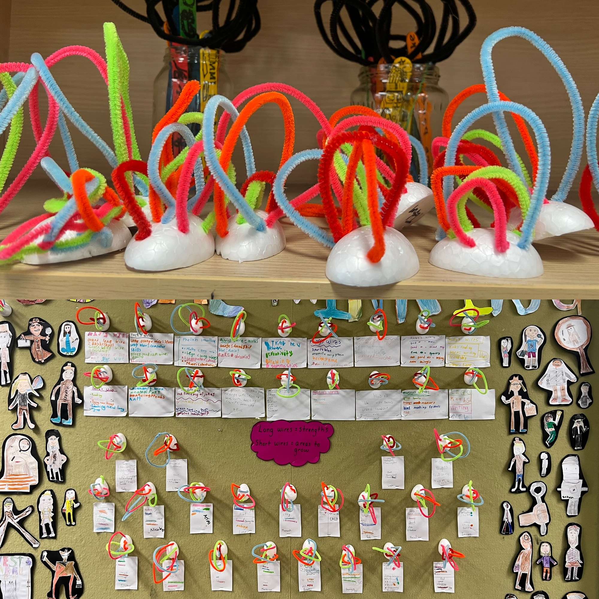 Each of the wires represented a different strength (smart) that the child had. Some of the wires were a little shorter because they were 'smarts' that the children wanted to develop.