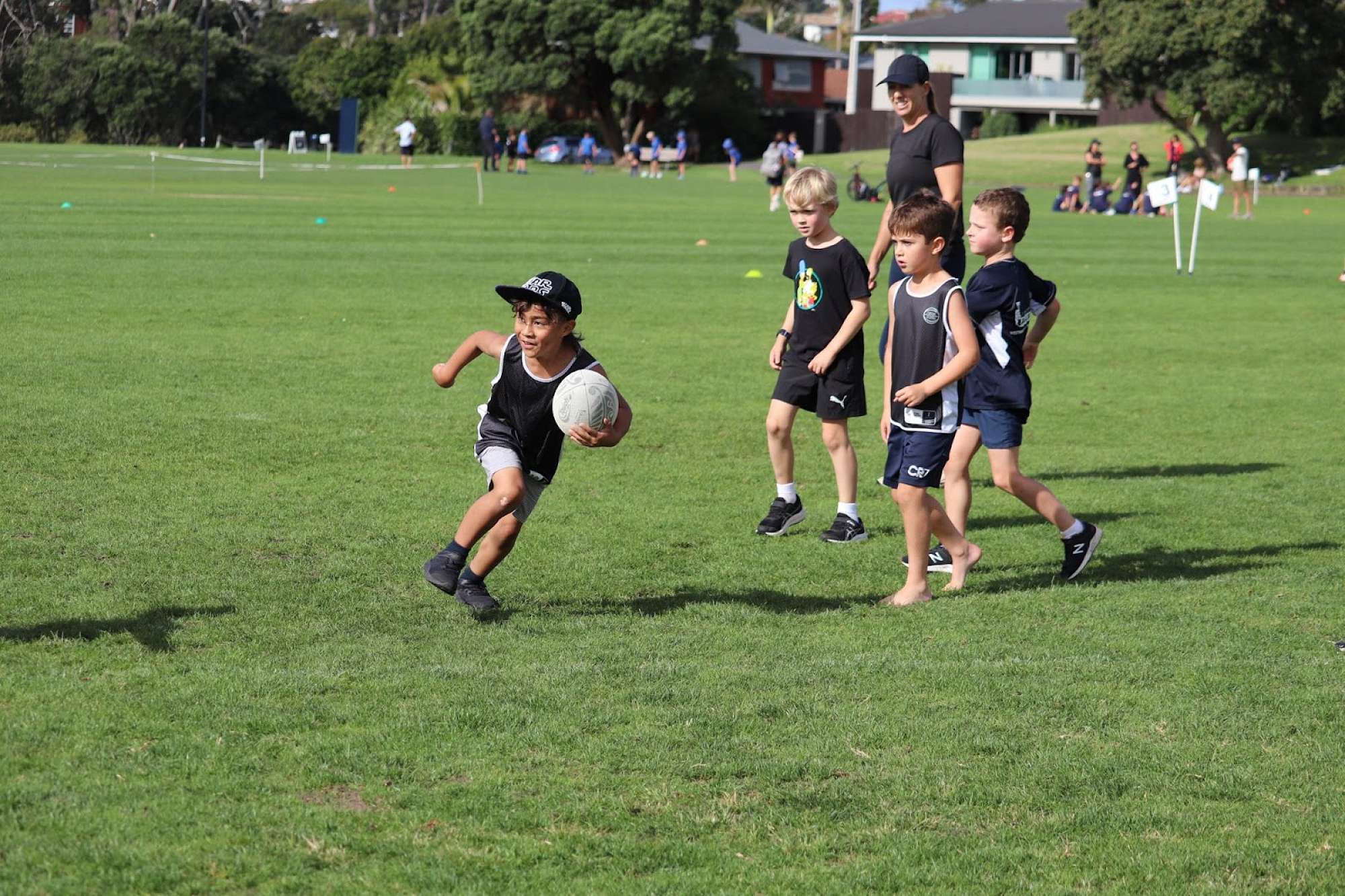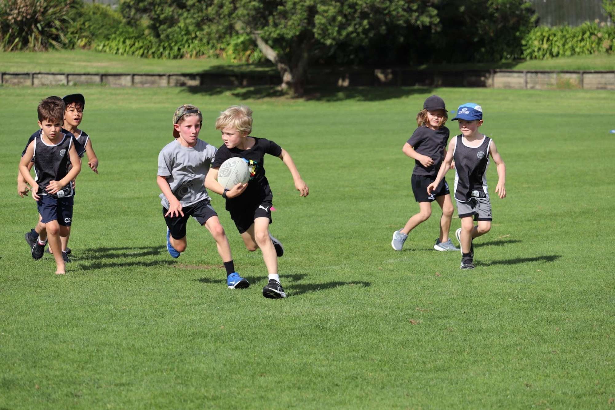 The Tigers and the Warriors had another epic battle for first and second place in their competition, with the Tigers coming away with a 4-3 victory. Well done to Leon Tait for player of the day (for excellent running and defending), and Charlie Dick, Gigi Ormerod, Lennox Pile, Freddie Laban and Oscar Dick on scoring tries. But it really was a team effort each time in getting over the line, with some great teamwork and quick plays. Warriors captain of the day, Oscar said “It was a very good game against the Tigers. They played really well and won”.