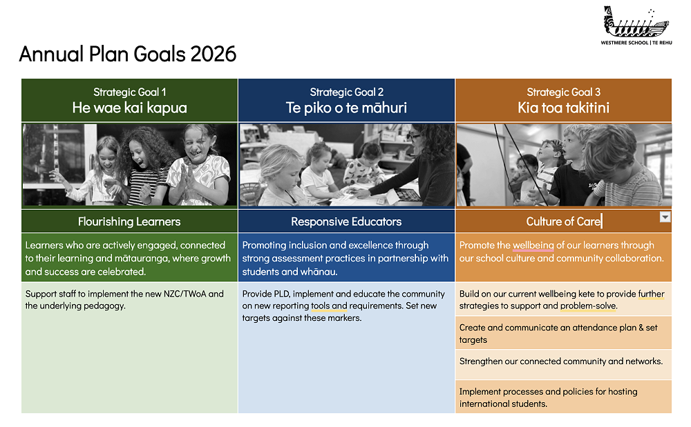 And as always, we want happy, thriving learners, and our wellbeing programme is an important part of this. We will continue to develop this programme to meet the varied and changing needs of our tamariki.