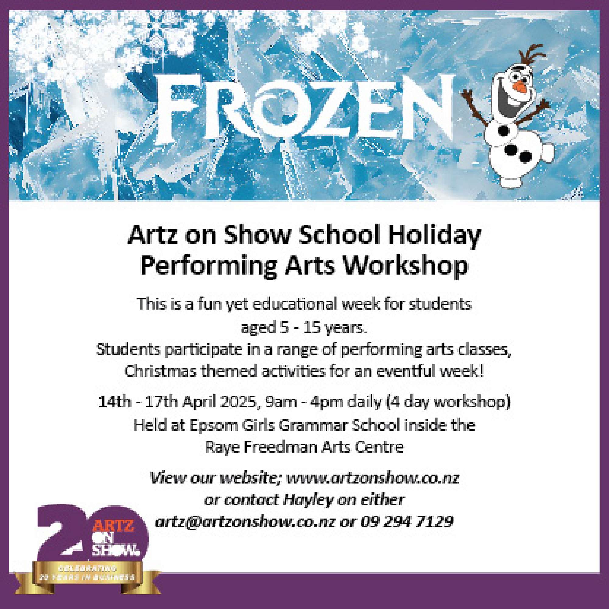 Artz On Show School Holiday Workshop