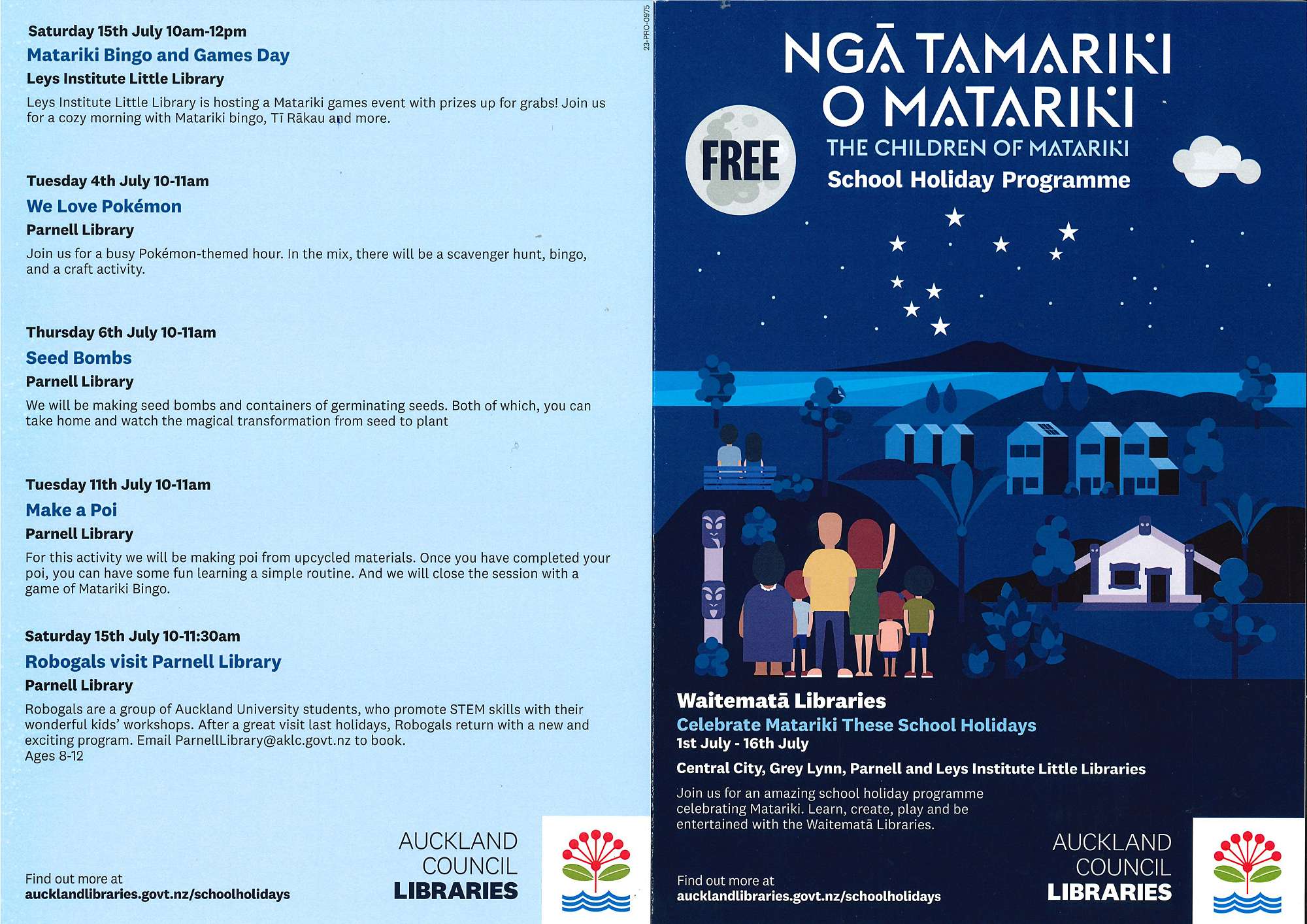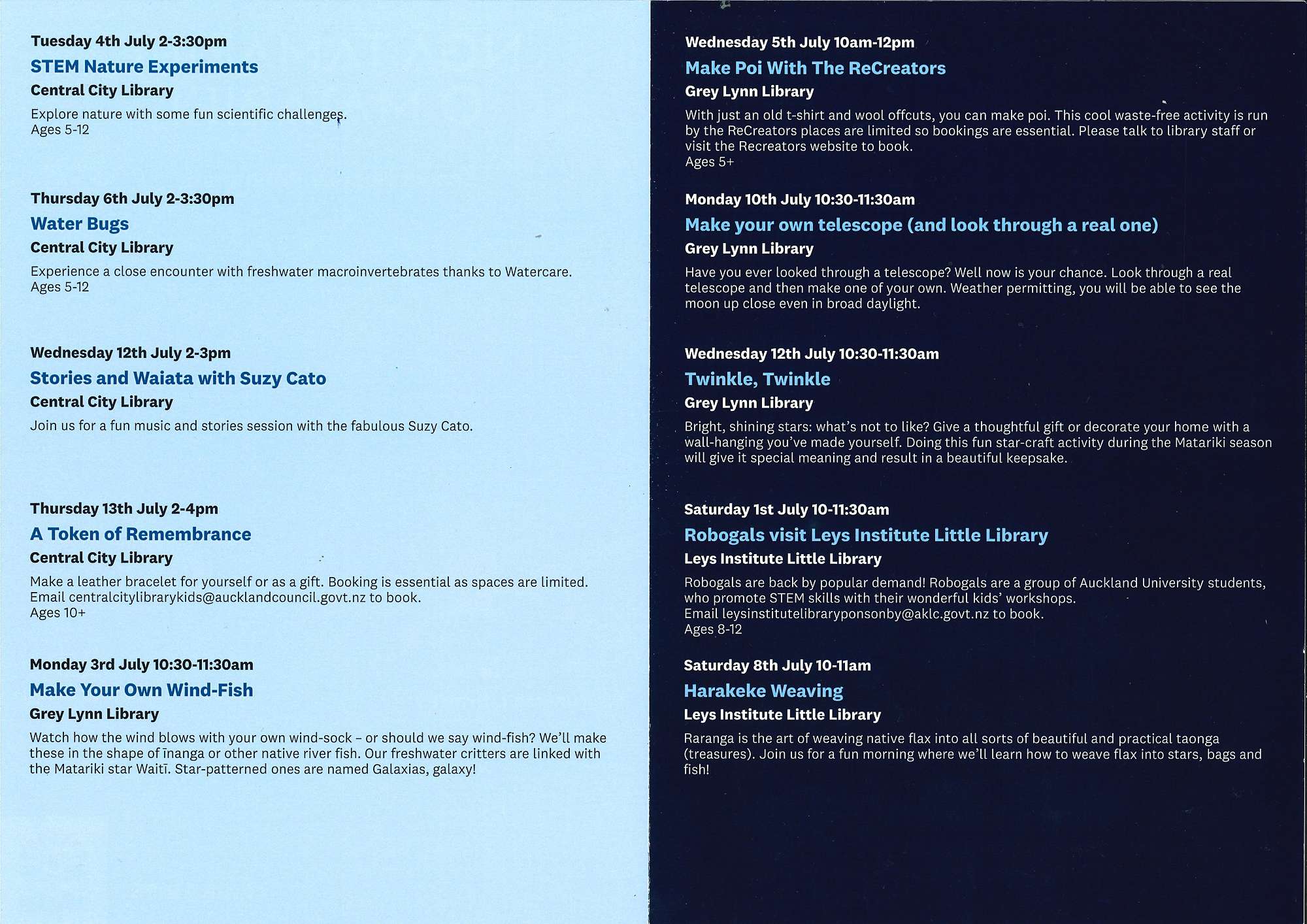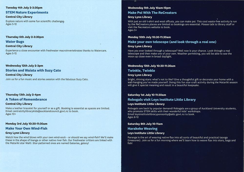 - Waitematā Libraries School Holiday events