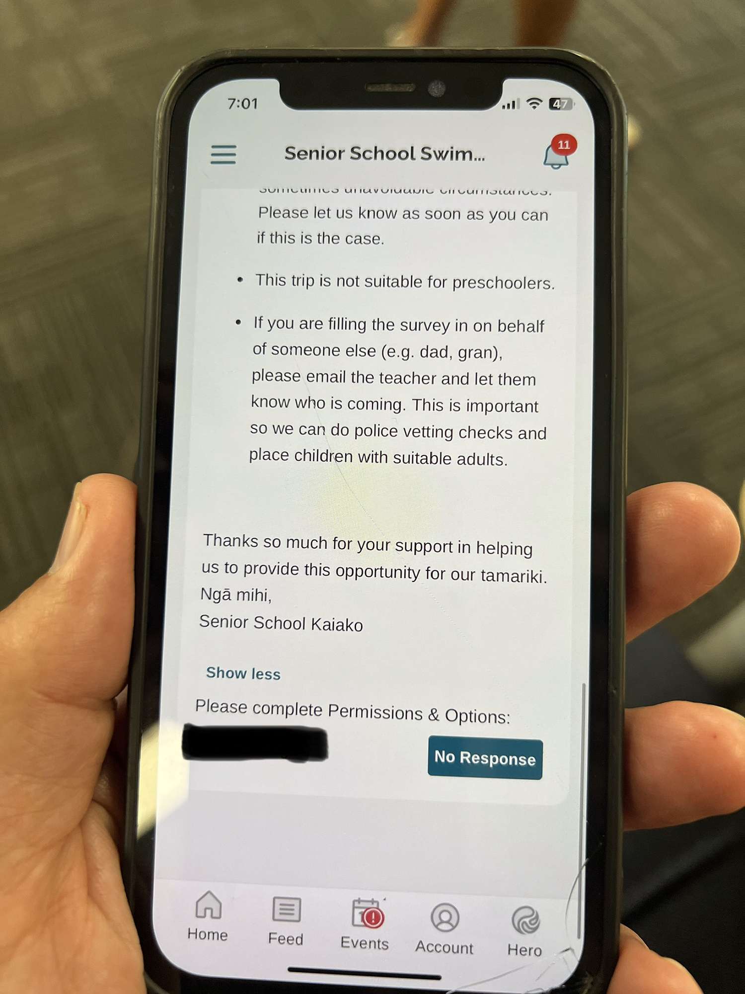 You may have noticed a new calendar icon on your Hero app. This is the Events button. In this section, you'll find permission forms for upcoming trips. Click on the trip and you'll find all the details for the trip, a button to give permission and that will lead onto another screen asking for parent help, etc.