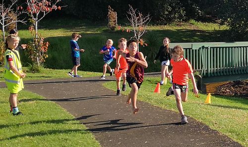 Warm up finished and we made a line to start, 3, 2, 1 “bang” the clapper signalled the start of the race. A very fast older student led us along the course. We started at an extremely fast pace but after a few corners we slowed down a bit.
