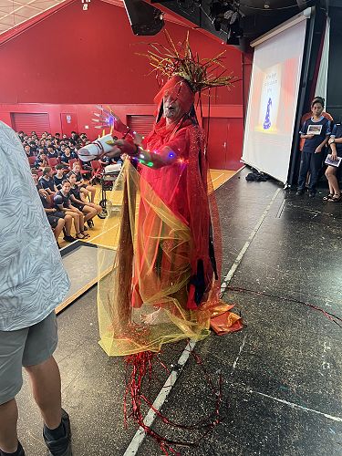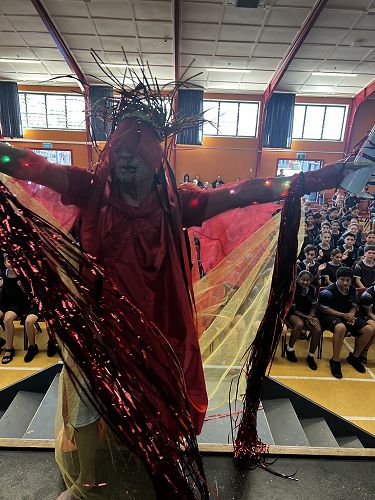 Matua Grant, our librarian dressed as the book character of Mahuika today at our School Assembly.