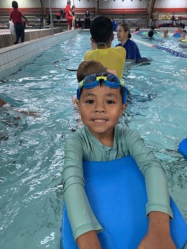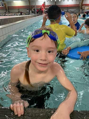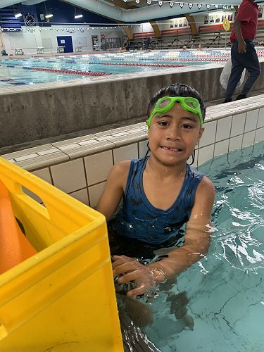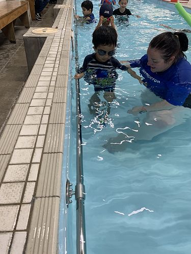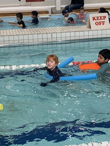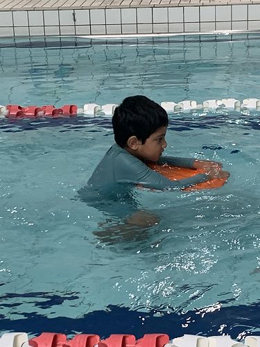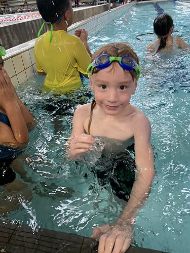 Swimming has been fun. We have learnt how to float, how to blow bubbles, how to go under the water,