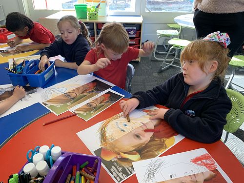 In Rata we made cards for the special people in our lives. We have also had Abby's puppy, Rocket, visiting. Our self portraits are now finished and up on the wall.