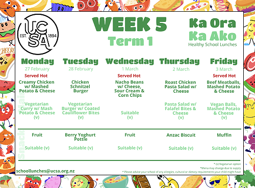 Please see the attached Menu for Week 5. It has been fantastic to see so many students trying new foods as we have introduced the lunches.