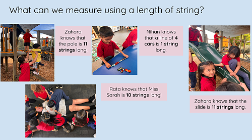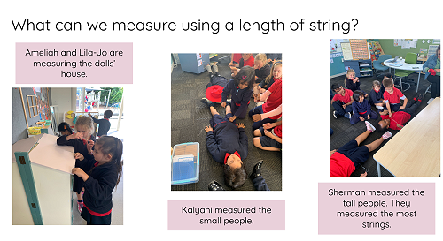 Check out some of our students using string to measure different spaces, we even took this learning to our outside environment so that they could see that Maths is all around us!