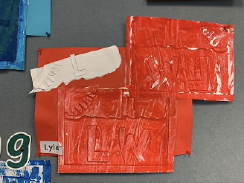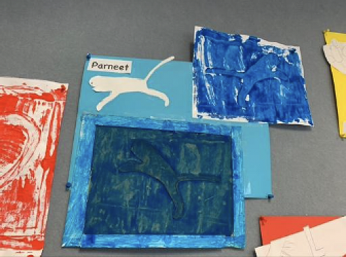 Print Making - We learnt about print making this week. We started first with a ‘drawing’ on paper and then we transferred this onto cardboard to make a ‘template’.