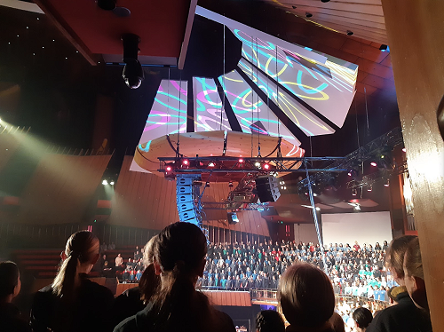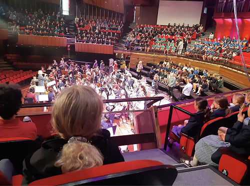 On Thursday 2nd November the Wharenui Senior Choir performed as part of the Christchurch Schools’ Music Festival. This event is held at the Town Hall over several nights each year. This year there were about 1000 Year 5-8 students participating each night from over 100 Canterbury schools in the massed choir. In addition to the massed choir there are also opportunities to be part of a representative choir, orchestra or concert band. It is a great opportunity to have professional musical coaching and be part of a performance including amazing lighting in addition to the music.