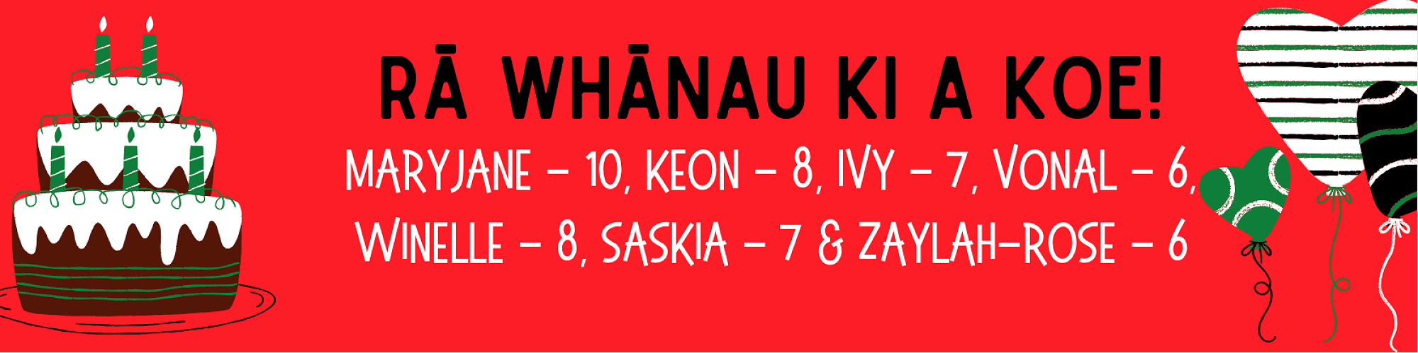 Ra Whānau ngā Tamariki - Happy Birthday to these Students